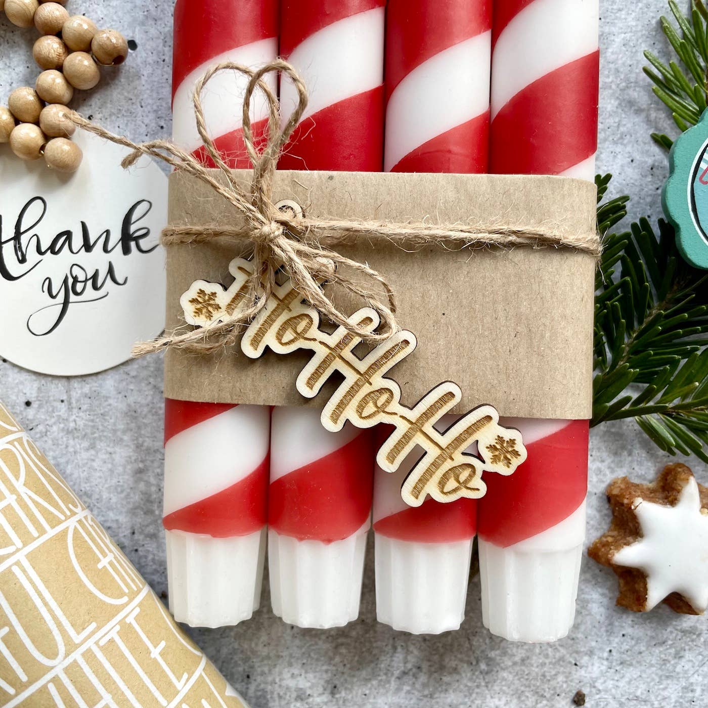 Diese Kerzen erinnern mit ihrem rot-weiß gestreiften Muster an die typischen Zuckerstangen aus den USA. Ein echter Klassiker, der in der Weihnachtszeit in keinem Zuhause fehlen darf. Jede Kerze wird mit Sorgfalt handgetaucht und ist ein absolutes Unikat.