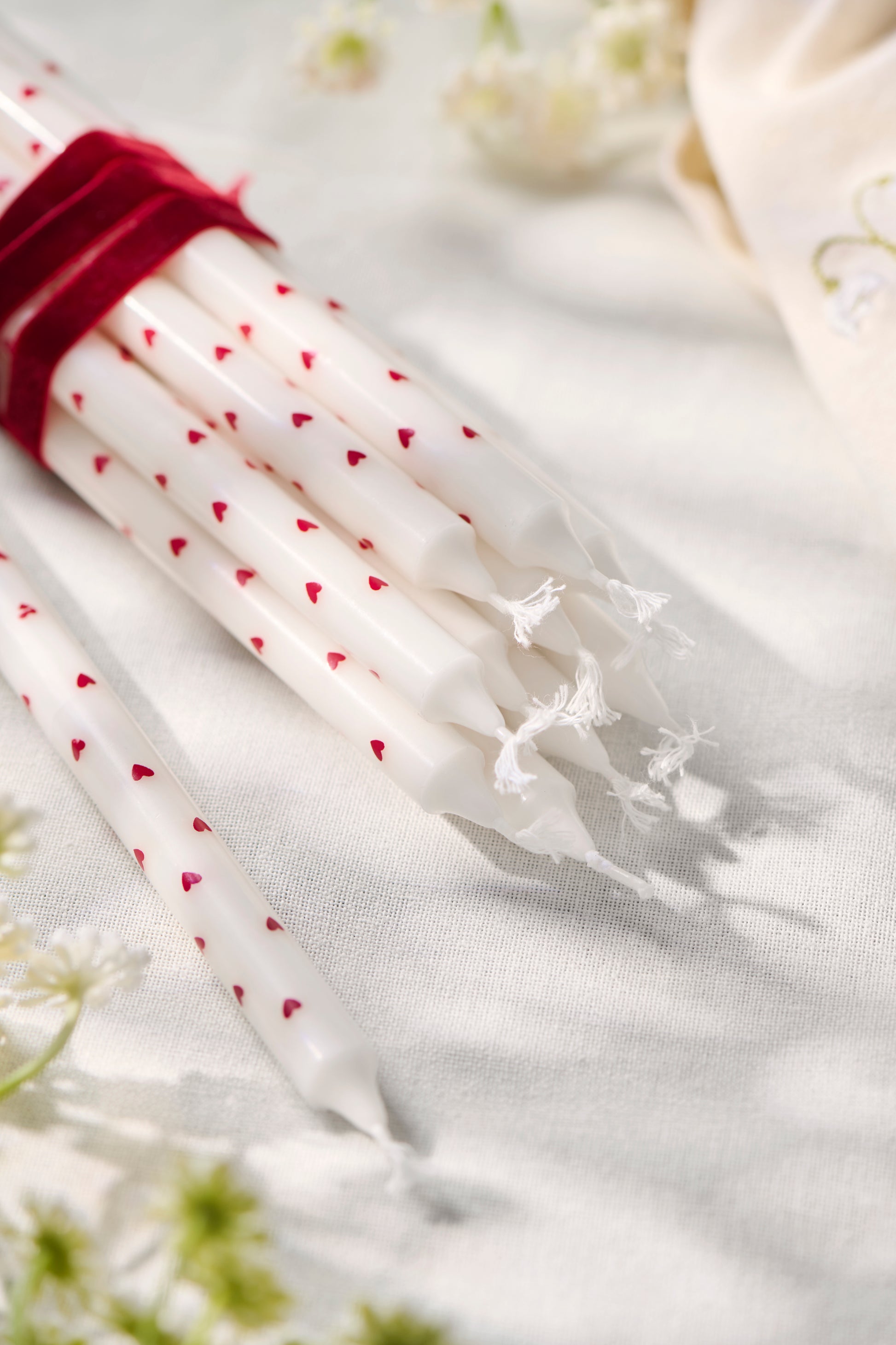 Dünne, hohe Kerze mit hübschen Herzen. Perfekt für Weihnachten, den Muttertag, den Valentinstag oder als liebevolles kleines Geschenk für die Gastgeberin – und für all die Momente, in denen Sie eine warme und herzliche Atmosphäre schaffen möchten. Eine Qualitätskerze aus der EU. Kerzenhalter nicht vergessen – für sicheren und schönen Stand.