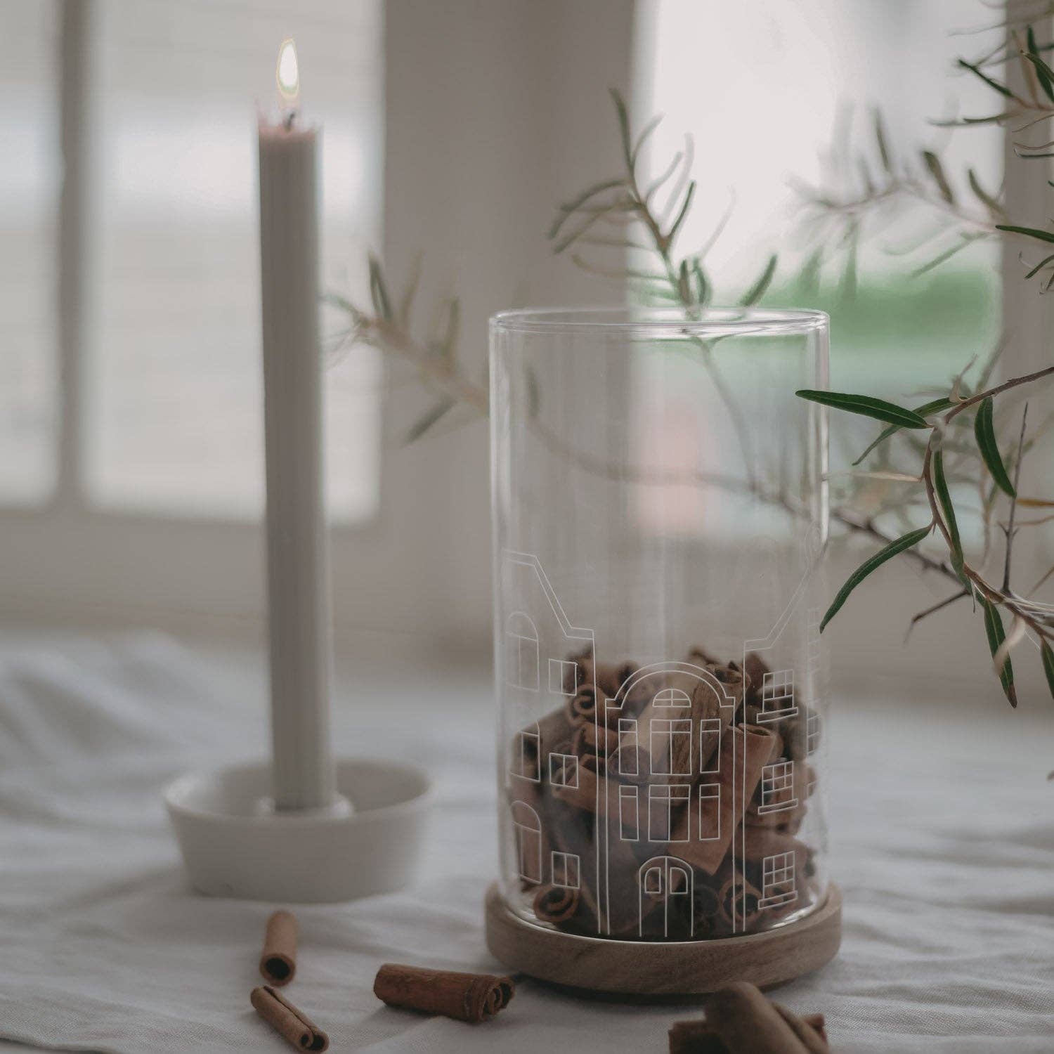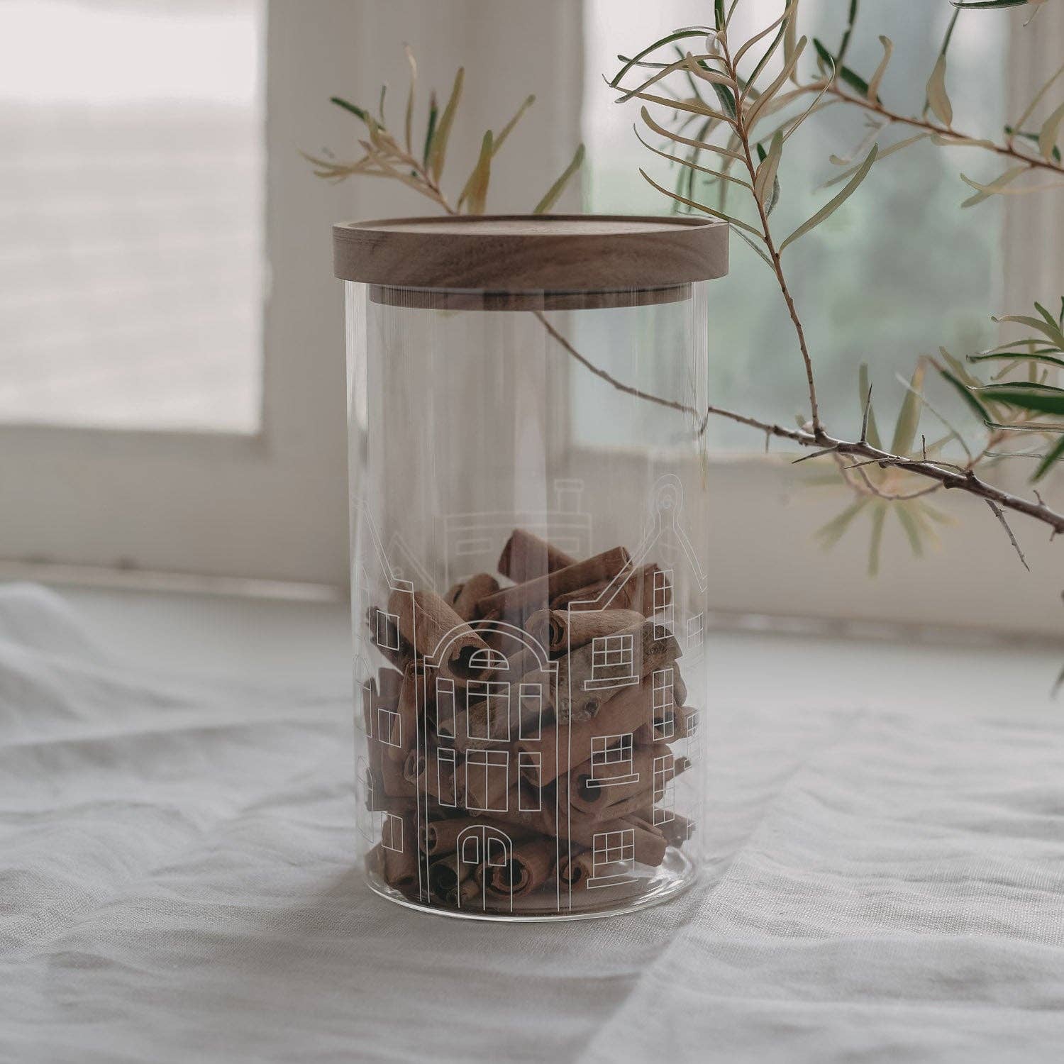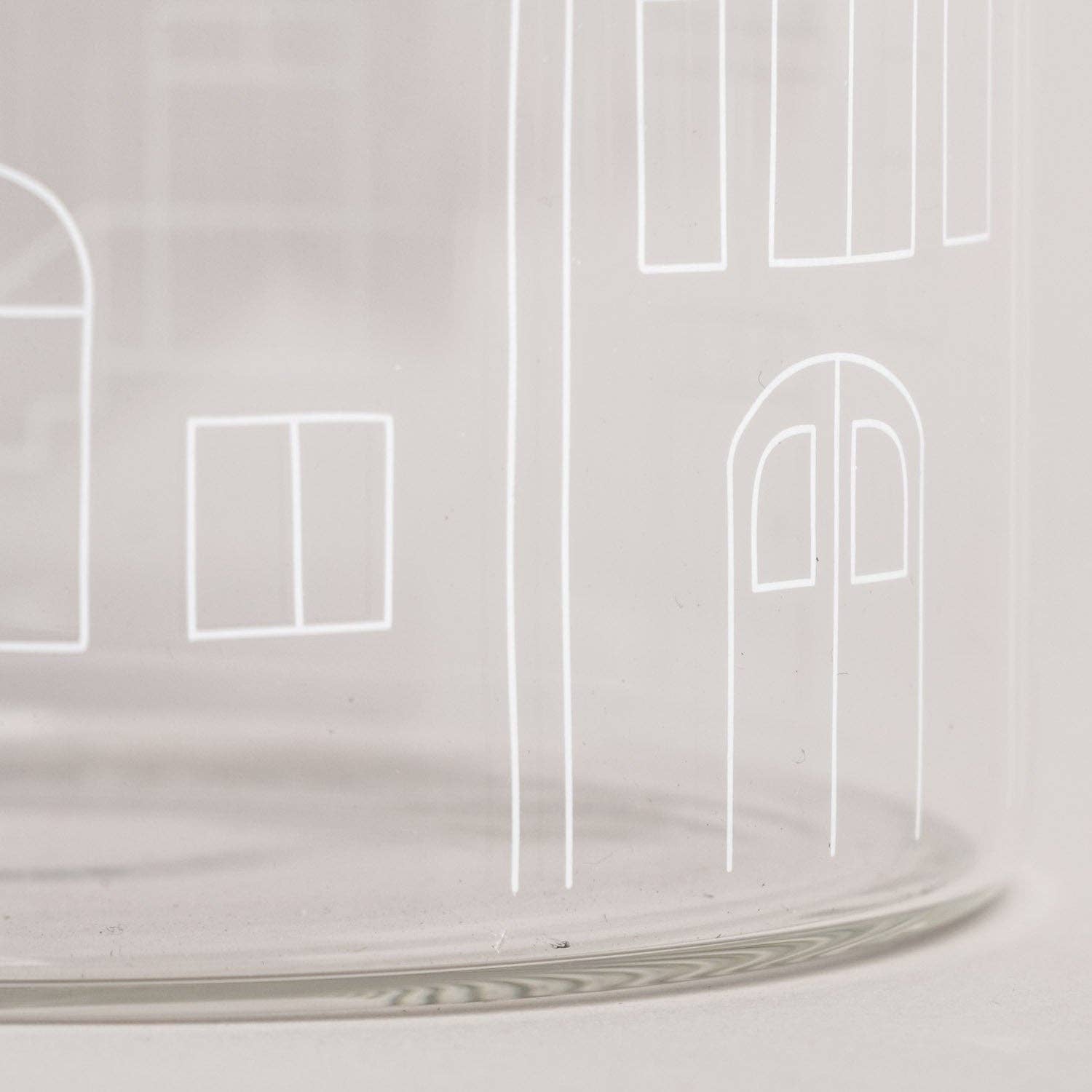 Dieses elegante Glas aus robustem Borosilikatglas ist mit liebevoll handgezeichneten Häusern verziert. Es eignet sich perfekt, um eine Blockkerze drinnen zu platzieren und so auf dem Adventskaffeetisch eine gemütliche Atmosphäre zu schaffen. Das Glas ist ebenfalls hervorragend geeignet, um selbstgebackene Plätzchen zauberhaft aufzubewahren. Der Deckel aus unbehandeltem Akazienholz, versehen mit Logo und dem Motto "Konfetti für die Seele", macht jedes Glas zu einem Unikat. Der Silikonring sorgt für ein luftdichtes Verschließen, sodass deine Leckereien frisch bleiben. Unsere Vorratsgläser sind spülmaschinenfest und zu 100% recyclebar, was sie nicht nur stilvoll, sondern auch nachhaltig macht. Dieses Glas bringt festliche Stimmung und Freude in dein Zuhause! Maße: Höhe: 19 cm Durchmesser inkl. Deckel: 11 cm Durchmesser Glas: 10 cm Füllmengen: Volum